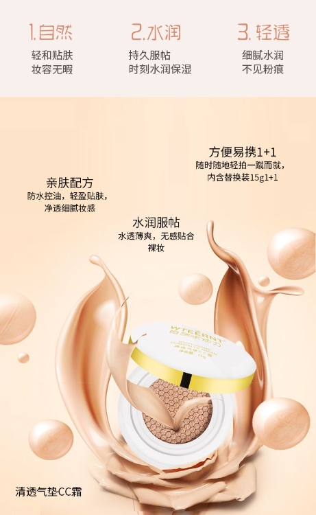 > 清透气垫CC霜遮瑕霜oem品牌定制